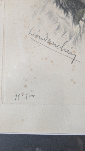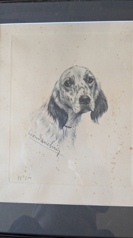 Lithographie d'un portrait de setter Anglais. signée et numérotée 95/500 au crayon. Rousseurs éparses.