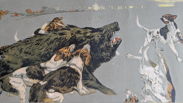 Paire de lithographies en couleur vers 1900. Véritable fresque avec une foule de détails.