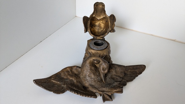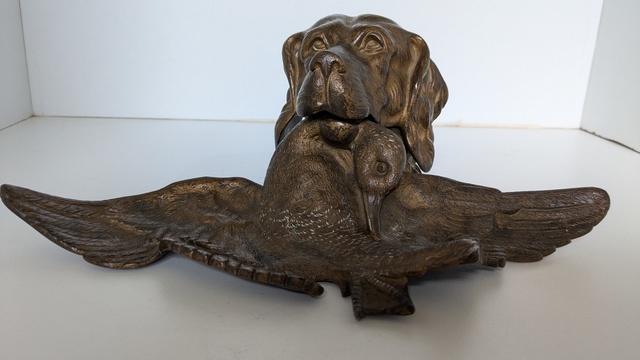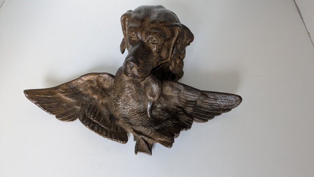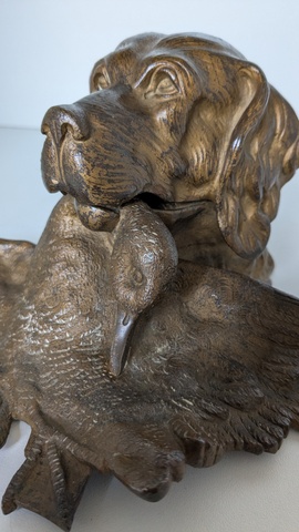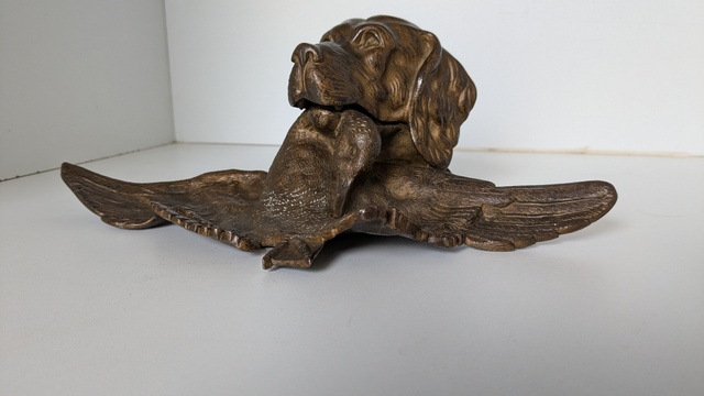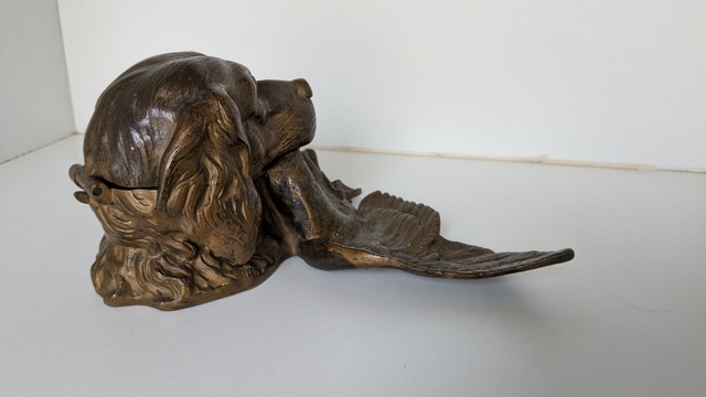 Bronze tête épagneul au rapport d'un canard 190 Euros Code article : 25-31 Encrier en bronze stylisant un épagneul tenant dans sa gueule un canard. Début XXe siècle. Réservoir à encre en plomb. 29 X 11 cm. 2.866kg Code article : 25-31 Notez ce code pour payer chèque ou virement. Acheter via Paypal ou carte bancaire (achat sécurisé via Paypal) En cliquant sur ce lien vous acceptez nos Conditions générales de vente Optimisé par