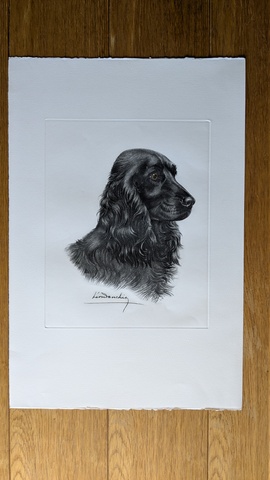Très belle aquatinte d'un portrait de cocker sur papier d'arche. signée dans la planche.