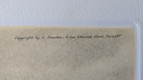 Deux infimes trous d'épingle de chaque coté de l'aquatinte.