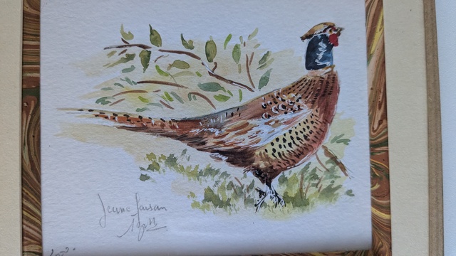 Aquarelle jeune faisan 30 Euros Code article : 24-27 Aquarelle 17X15cm signée au crayon. Signature non identifiée encadrement sous verre , passe partout et bords craft. Code article : 24-27 Notez ce code pour payer chèque ou virement. Acheter via Paypal ou carte bancaire (achat sécurisé via Paypal) En cliquant sur ce lien vous acceptez nos Conditions générales de vente Optimisé par
