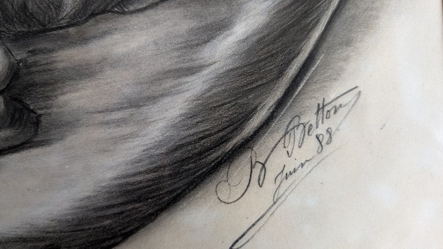 Très joli dessin aux deux crayons de B.Betton d'aprés l'oeuvre de Sir Edwin Landseer "sleeping bloodhound".