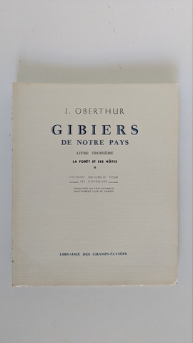 Gibiers de notre pays. 1er édition, Paris librairie des Champs Elisées, 1936/1941.