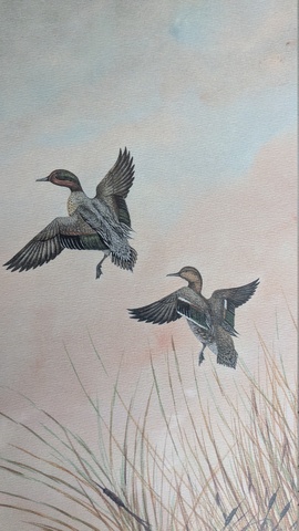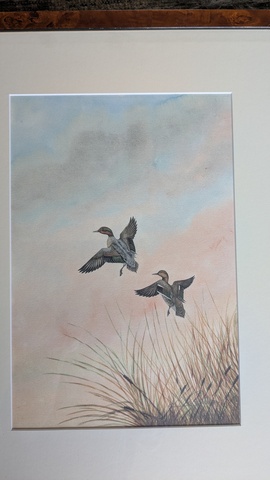Les sarcelles d'hivers 79 euros Code article : 25-79 Très belle lithographie de deux sarcelles d'hivers à l'envol signée en bas à droite C.Rollan (?). Encadrement refait et en excellent état. Cadre 53 X 43 cm Code article : 25-79 Notez ce code pour payer chèque ou virement. Acheter via Paypal ou carte bancaire (achat sécurisé via Paypal) En cliquant sur ce lien vous acceptez nos Conditions générales de vente